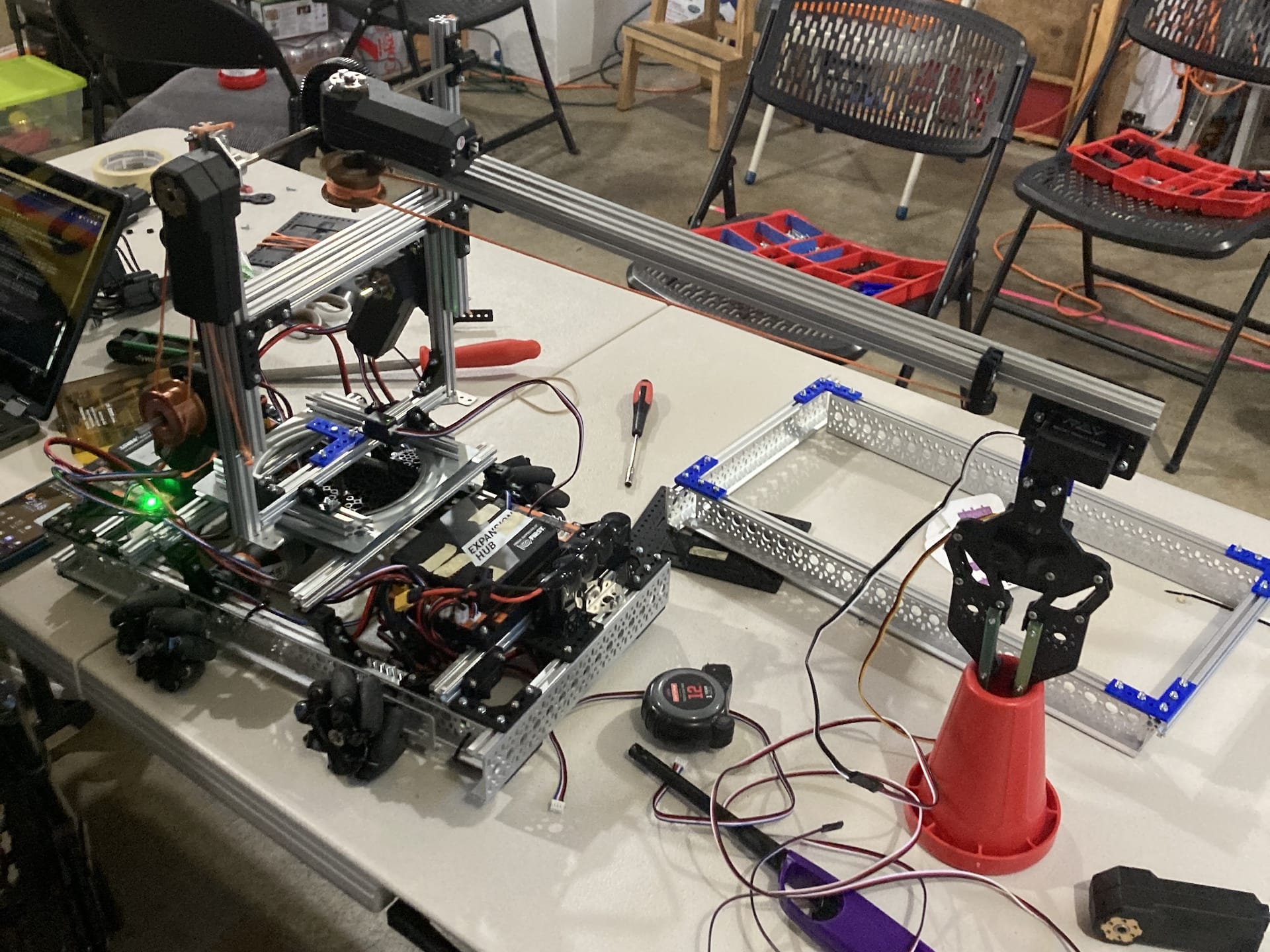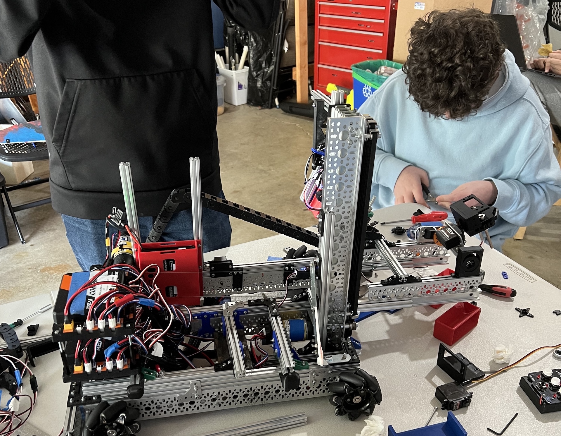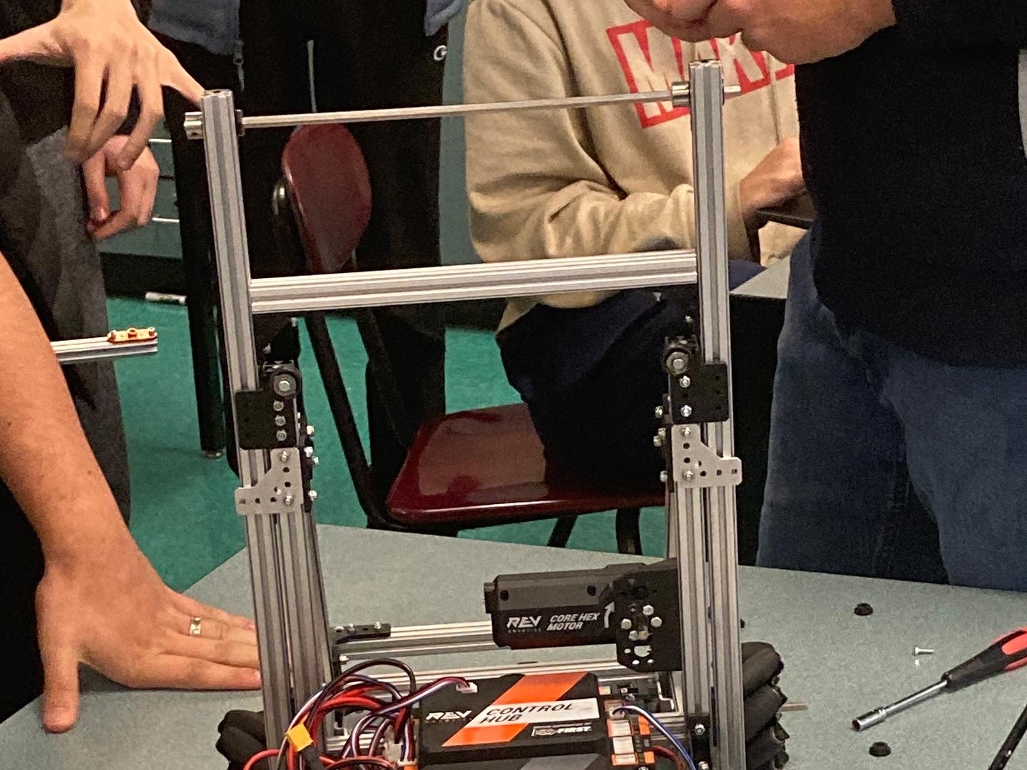 The 2024-25 season was a game-changer for our team. We decided to change the way in which we compete by participating in the local league meets, meaning we were competing at least 5 times a year instead of competing once. This gave us much more time to analyze strategies that work and iterate on our designs between the meets, while also helping us meet more teams in our community. The challenge this year was to grab samples (small rectangular prisms) from the “submersible” and to either place them in a basket or hang them from a bar as “specimen.” After the league meets, we still hadn’t won an event yet, but we still had a chance! We were invited to the Spark Invitational, where we scored the 8th highest score in Oregon (at the time) and won the event alongside our friends at Beyond Tech. We left the event with a second-place Inspire Award in hand and a spot at the Oregon FIRST® Championship. We ended this record-breaking season with an offensive power rating in the top 10% of teams across the globe!
